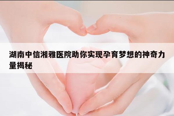 湖南中信湘雅医院是湖南省内一所知名的医疗机构,以其先进的医疗技术和优质的服务赢得了广泛的声誉。医院不仅拥有一流的医疗设备,还汇聚了一大批经验丰富的生殖医学专家,致力于为不孕不育患者提供全面的医疗服务。