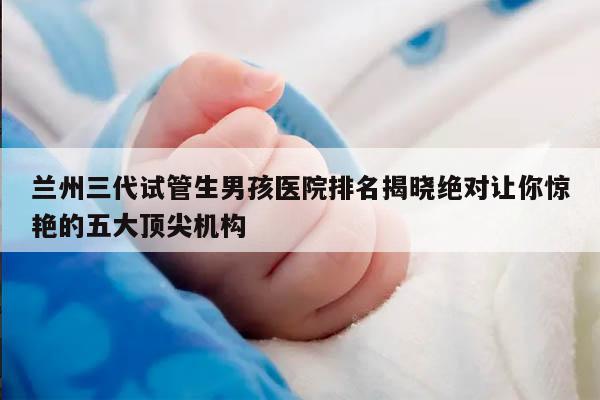 在兰州选择合适的医院进行三代试管生男孩,是实现家庭生育愿望的重要一步。通过对上述五家医院的分析,希望能够为您提供一些参考,帮助您找到最符合需求的医疗机构。无论选择哪家医院,重要的是保持积极的心态,配合专业的治疗,为自己的生育之路铺平道路。
